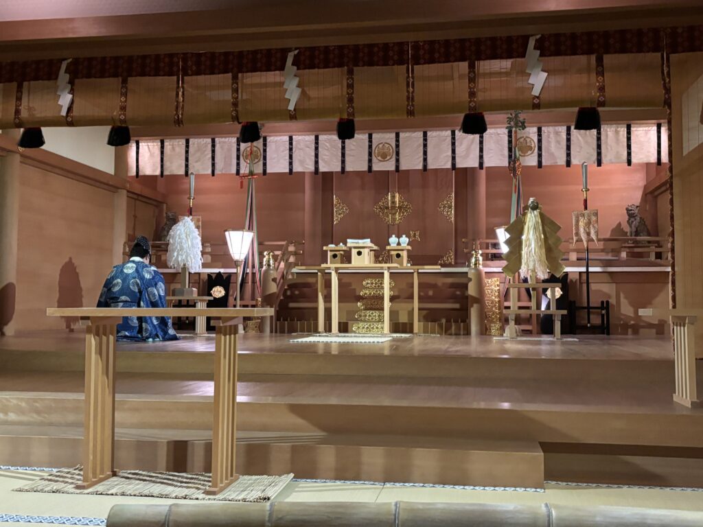 今回は御祈祷は私達だけですが、15分ほど待ってようやく声がかかり、本殿へ案内され移動しました。